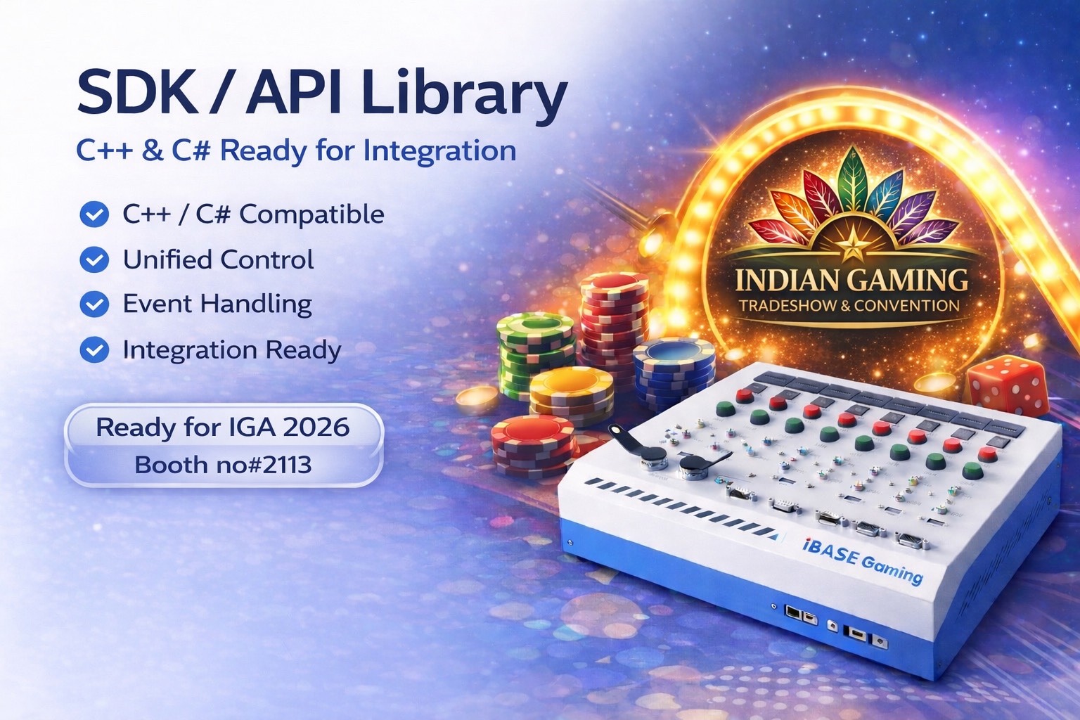iBASE Gaming will showcase its latest gaming platforms and development capabilities at Indian Gaming Association (IGA) Trade Show & Convention. At Booth #2113, iBASE Gaming presents a complete ecosystem combining gaming platforms, Development Kit, and newly developed SDK/API libraries—enabling faster integration in regulated gaming environments.