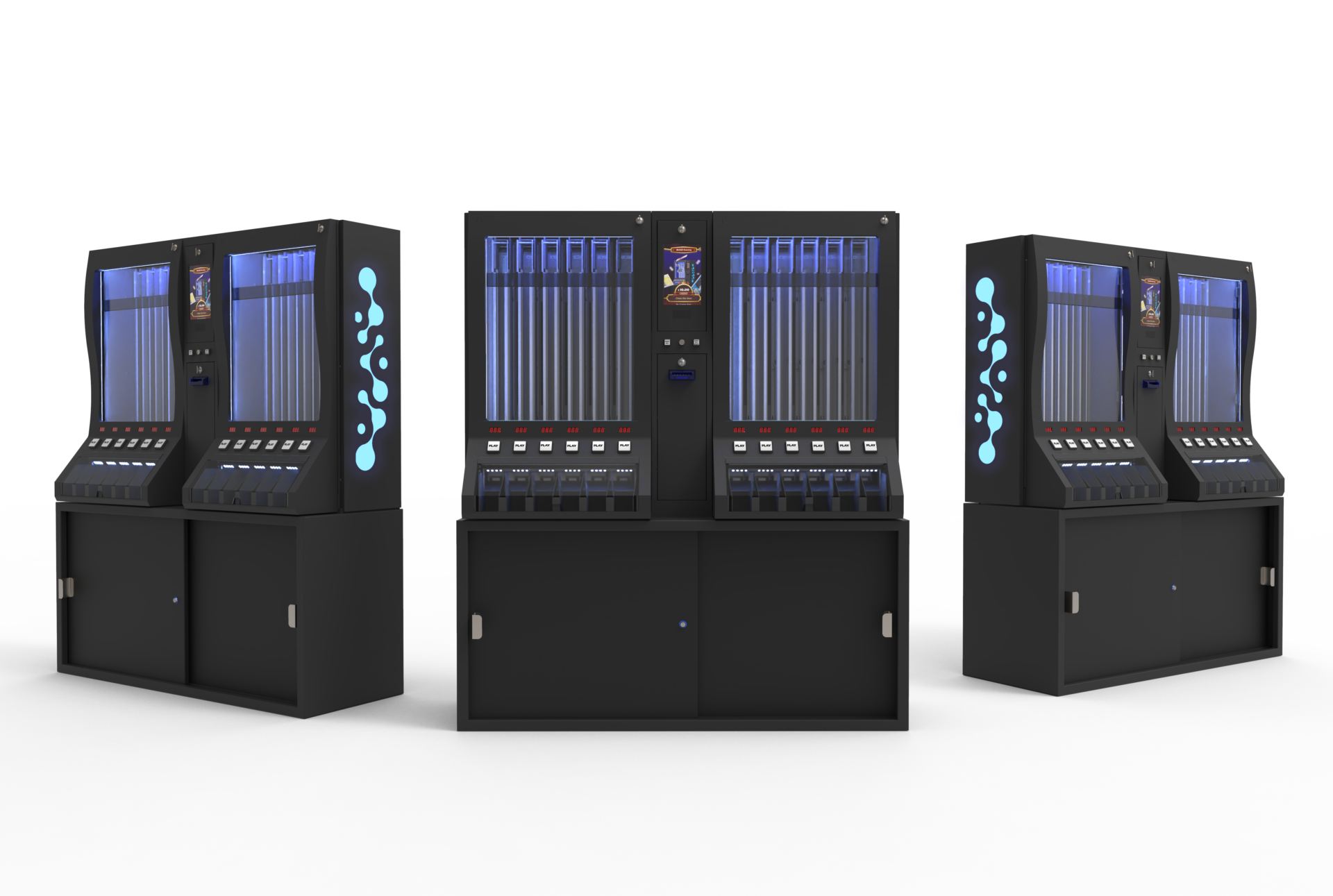 Addressable LED lighting for status and side panels. Multi-door sensor system for ticket, display, cash, and hopper